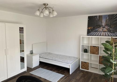 - Das Zimmer befindet sich in einem Anwesen, welches damals als Hotel diente - Möbliert mit Bett inkl. Matratze, Stuhl mit Tisch, Schrank oder Regal - kleine Einbauküche mit Kühlschrank - Eigenes Bad mit Dusche, WC und ...