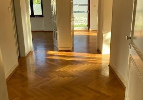 Sehr ruhige Lage, Parkstraße Diese Dreizimmerwohnung hat eine Wohnfläche von ca. 96m2 und befindet sich im EG eines sehr gepflegten 2-Parteien-Hauses. Großes ca. 23m2 Wohnzimmer mit breiten Fenstern, Holzparkett und ...