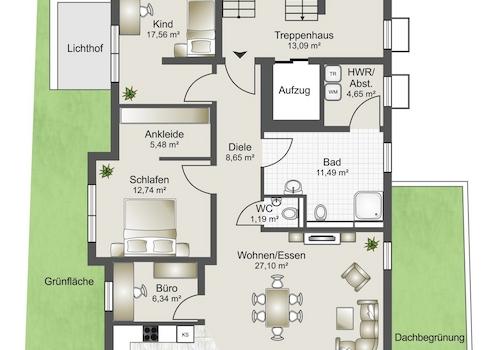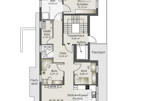 NEUBAU - Modernes Wohnen mit Komfort - 2,5 Zimmer DG-Wohnung mit Dachterrasse und Kfz-Stellplatz