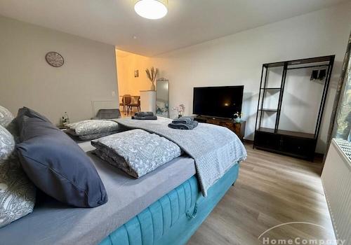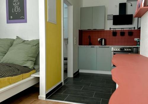 + Design Apartment mit frei gelegten Mauerwerk im Wohnzimmer + Doppelbett 160x200cm/Queensize + Internet + Bad mit Dusch + Waschtrockner in einer gesonderten Kammer auf dem Treppenabsatz + Einbauküche mit ...