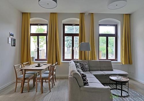 ### Please note the availability date! Bitte das Verfügbarkeitsdatum beachten! ### nobles 2-Zimmer-City-Apartment, nur ca. 150 Meter von der Dresdner Frauenkirche entfernt; Wohnzimmer mit Couch, Sessel, TV, Sideboard, ...