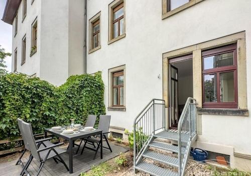### Please note the availability date! Bitte das Verfügbarkeitsdatum beachten! ### neu möblierte Wohnung im Hochparterre einer denkmalgeschützten Stadtvilla mit Garten; separater Hauseingang mit Terrasse; WLAN und ...