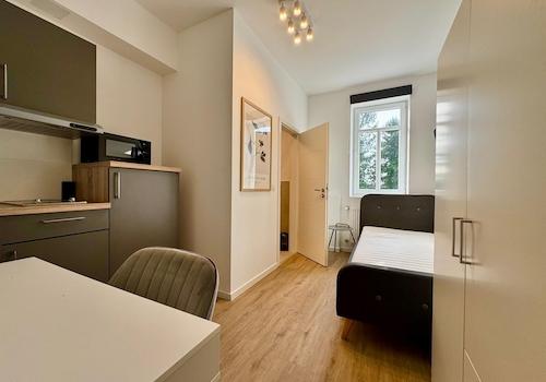 Das WG-Zimmer ist komplett möbliert und modern ausgestattet - ideal für Studierende, Azubis oder Be-rufstätige. Es verfügt über einen praktischen Schreibtisch mit Drehstuhl, einen geräumigen Kleiderschrank mit ...