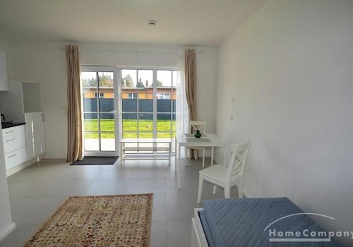 Apartment Nähe Campus Berlin Buch. Dieses Apartment ist neu erstellt und möbliert. Wohnraum mit Bett, Tisch, Schrank, offener Küche. Helles Duschbad. Terrasse, Außen-Jalousien, Fußbodenheizung. Internet und ...