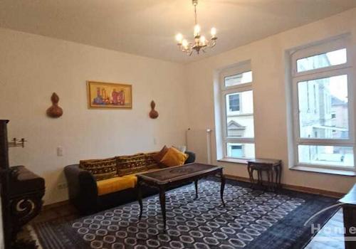 3 Zi.Whg., möbliert, 1. OG, Citylage. Unter der Wohnung befindet sich eine Gaststätte. Kleine Dachterasse. Offene Gestaltung (für Familie eher ungeeignet), Schlafsofa im Arbeitszimmer. Miete 1130,- € zuzügl. Strom nach ...