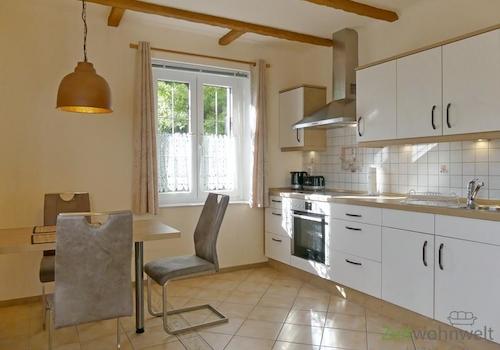+ Diese Wohnung hat ca. 60 Quadratmeter mit einem Schlafzimmer, Bad, Wohnzimmer und Küche. + Das Schlafzimmer hat ein gemütliches 1,80 m breites Doppelbett. + Im Wohnzimmer findet man ein gemütliches Ledersofa, ein ...