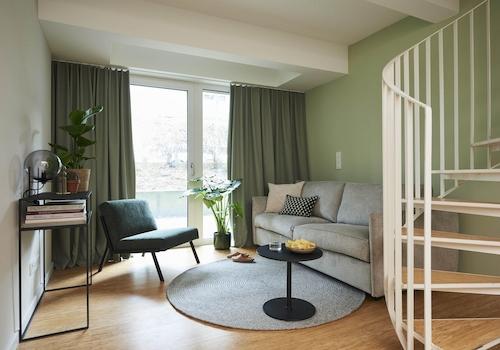 2-Zimmer Maisonette Apartment für 1250€ Warm – vollmöbliert mit Gym & Workspace