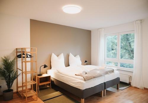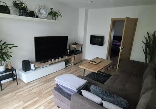 Gemütliche 2-Zimmer-Wohnung im 2. OG mit Balkon – der perfekte Ort, um nach einem langen Arbeitstag oder einer ausgiebigen Radtour durch die Natur aufzutanken. 4 flexible Einzelbetten bieten Komfort für Monteure, ...