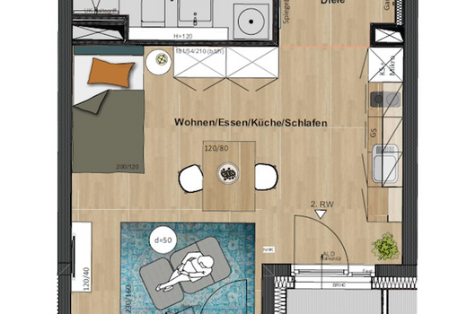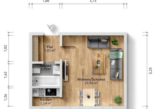 Stadtnahes, voll möbliertes 1-Zimmer-Apartment – Erstbezug