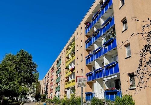 Die helle und freundliche 2-Raum-Wohnung mit Balkon befindet sich in einem vollständig renovierten Mehrfamilienhaus mit gestalteter Außenanlage.