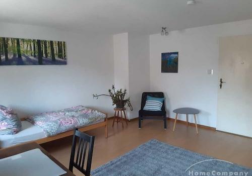 1 Zi. Whg., möbliert, 1. OG im Mehrfamilienhaus, mit Balkon.