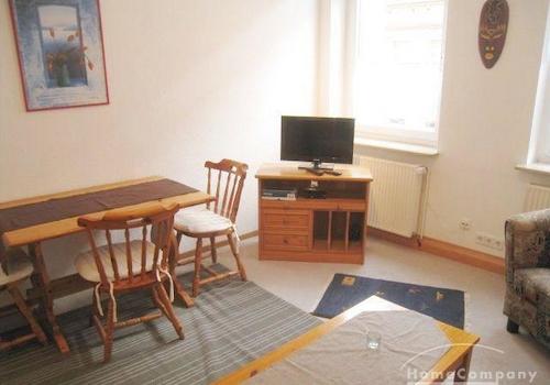 Wohnung im 1.OG. Altbauwohnung in Mehrfamilienhaus ohne Lift. An Nichtraucher. Mietzeit mindestens 3 Monate. Wohn/Schlafzimmer mit Bett 120x200 cm, Sessel, Schreibtisch, kleiner Tisch, Regale. Einbauküche komplett ...