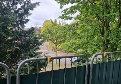 Es ist ein Architektenneubau mit vieleckigen mondänen Räumen. Der große Eingangsbereich auf der Nordseite des Hauses, gegen Regen überdacht, öffnet den Weg zu einer weißen Haustür mit Glas. Das Glas dort ist B3 ...