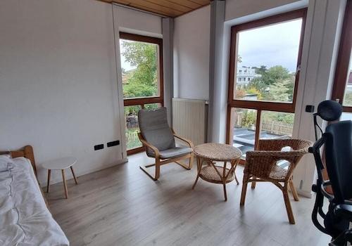 1 möbliertes Zimmer, 1.OG in einer 2 Zi.-Wohnung (insges. ca. 55 qm) in 2er WG mit Balkonnutzung, ruhige Lage im Grünen.