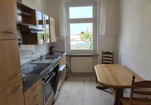 2 Zi.Whg., möbliert, 6. OG im Mehrparteienhaus, komplett möbliert, Loggia.