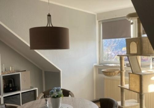 ### Please note the availability date! Bitte das Verfügbarkeitsdatum beachten! ### möblierte Wohnung nahe der Innenstadt von Ilmenau; Wohnzimmer mit großem Esstisch, Sofa, Sideboard, Schrankwand und TV; Schlafzimmer ...