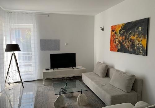 Dieses schicke 2-Zimmer-Apartement bietet, aufgrund der üppiger als gewöhnlich bei Kleinwohnungen ausfallenden Möblierung, Wohnqualität auf kleinem Raum. Im Wohnzimmer mit Sofa und Essbereich können auch mal Gäste ...