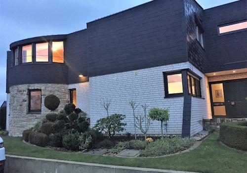 Das freistehende Zweifamilienhaus präsentiert sich in einer besonderen architektonischen Ausführung und bietet zwei nahezu identische, sehr großzügige Wohneinheiten. Das Haus ist vollständig unterkellert und verfügt ...