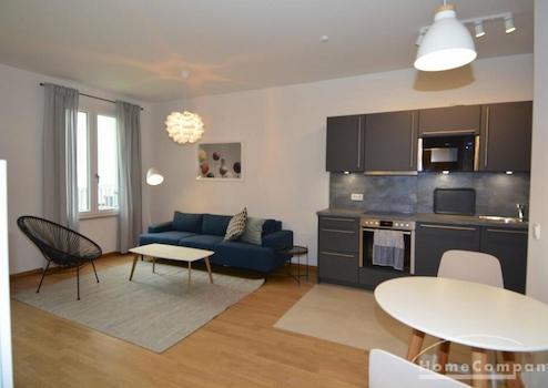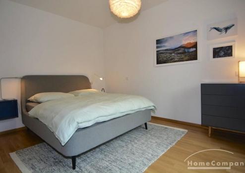 Diese neue Wohnung ist frisch möbliert worden. Neubau, möbliert, hoher Standard. Modernes, aber angenehmes Interieur mit Charakter. Wohnzimmer mit offener Küche und Balkon, ruhiges Schlafzimmer mit neuem Boxspring-Bett (160cm). Das moderne Bad hat eine Badewanne. Zur Ausstattung gehören Spülmaschine, Waschmaschine, Smart-TV und vieles mehr. Die Fenster sind durch elektrische Rollos voll abzudunkeln.