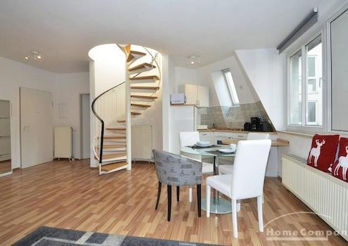 möbliert, Aufzug, hell, Hinterhaus, Penthouse, renoviert, ruhig, Balkon, Verkehrsgünstig, netter Kiez, City