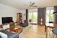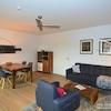Im Wohnzimmer befindet sich ein moderner Deckenventilator für eine frische Brise in den Sommermonaten.