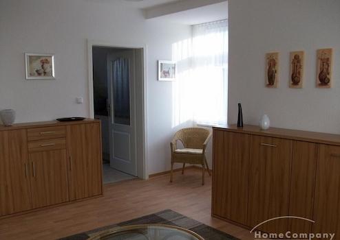 Die Wohnung befindet sich im 1.OG einer gepflegten Stadtvilla in Teltow in der historischen Altstadt, nur 500 Meter zum S-Bahnhof (S25). Diese neuwertige 3-Zimmer-Wohnung wurde in 2012 komplett saniert und hochwertig und modern möbliert. Voll ausgestattete Küche mit Geschirrspüler und Kühl-Gefrier-Kombi. Helles Tageslichtbad mit Wanne, Dusche und Waschmaschine. Schlafzimmer mit Doppelbett und begehbarem Kleiderschrank. Im Wohnzimmer befinden sich eine Eckcouch, Essgruppe, Schrankwand, LED-TV, HiFi-Anlage, W-LAN. Großer Balkon mit Sitzgruppe.