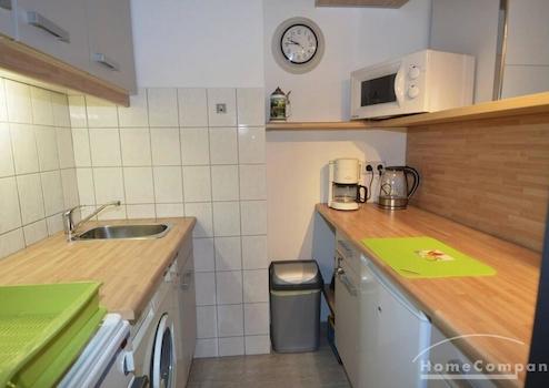 Gemütliche, kleine und ruhig gelegene Wohnung in einer Seitenstraße der Steglitzer Bergstraße, komplett möbliert und voll ausgestattet mit allem, was man zum Wohnen und Wohlfühlen braucht. Sehr guter Lichteinfall dank großer Fenster, 2. OG mit Aufzug. Es gibt ein gemütliches Wohn-/Schlazimmer mit Schlafsofa und eine offene, kleine, aber vollwertige und moderne Küche mit Herd, Kühlschrank, Mikrowelle und Waschmaschine. Das moderne Bad hat eine Badewanne.