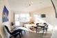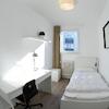 Das Schlafzimmer mit Doppelbett (ca. 140cm), das zum ruhigen Innenhof gelegene Zimmer mit Einzelbett(ca. 90cm) und Schreibtisch, im Wohnzimmer Esstisch, bequemes Sofa sowie Fernseh-/Lesesessel.