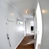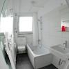 Bad mit Badewanne. Flur mit Einbauschränken.
