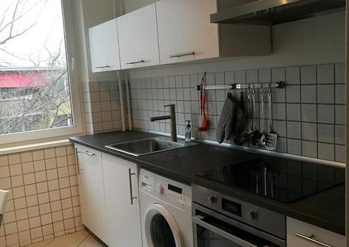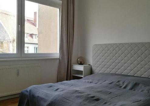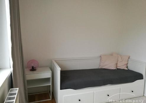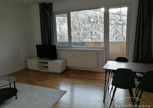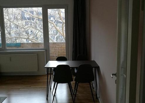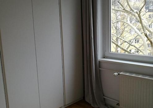 Frisch renovierte 3-Zimmer-Wohnung in Wilmersdorf. Das Schlafzimmer bietet ein Doppelbett mit großen Kleiderschrank welches genügend Stauraum bietet. Das zweite Zimmer bietet auf seinem Einzelbett noch eine weitere Schlafmöglichkeit. Modern gefliestes Tageslichtbad mit ebenerdiger Dusche. Küche mit Einbauküche und Waschmaschine und Sitzgelegenheit zum Essen. Des Weiteren gibt es noch eine kleine Nische mit Schreibtisch und ein Balkon mit Tisch und Stühlen.
