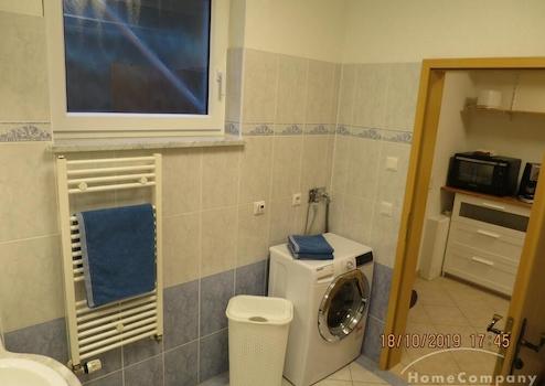 Die Souterrain-Wohnung hat ca. 42m², welche sich in 3 Räume, nämlich in Wohn-/Schlafzimmer, Küche/Flur und Bad aufteilen. Sie ist Teil eines freistehenden in 2002 errichteten Einfamilienhauses, befindet sich dort im Untergeschoss und besitzt einen separaten Hauseingang. Couch (Schlafcouch), Couchtisch, großer Schiebetüren-Kleiderschrank, Staubsauger, Waschmaschine, Fön, Bügeleisen und Bügelbrett, Einbauküche mit Dunstabzugshaube. Ein PKW-Stellplatz ist vorhanden.