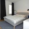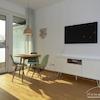 Neubau,hoher Standard. Modernes, aber angenehmes Interieur mit Charakter. Wohnzimmer mit offener Küche und Balkon, ruhiges Schlafzimmer mit neuem Boxspring-Bett. Das moderne Bad hat eine Dusche. Zur Ausstattung gehören Spülmaschine, Waschmaschine, Smart-TV und vieles mehr. Die Fenster sind durch elektrische Rollos voll abzudunkeln.