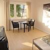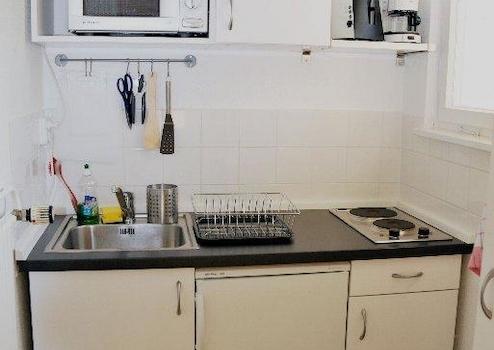 Helles, besonntes Studio mit Balkon für 1 Person mit bequemem Doppelbett (ca. 140cm-160cm). Umfangreich ausgestattete Einbauküche mit Kühlschrank, Doppelkochfeld, Microwelle. Kaffeemaschine, Toaster, Geschirr und Besteck. Bad mit Badewanne, Esstisch & bequemen Fernseh-/Lesesessel. Vorraum mit Kleideraufbewahrung. Klingel mit Türöffner. Sat-TV und Radio.
