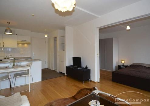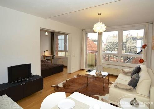 Ruhige, helle, modern möblierte 2-Zimmer-Wohnung mit geräumigem Balkon in Berlin Prenzlauer Berg. Die Wohnung liegt im Seitengebäude, nach Westen. Sie ist komplett ausgestattet. Zahlreiche Einkaufsmöglichkeiten für täglichen Bedarf befinden sich direkt vor der Tür. Unmittelbare Anbindung an S-Bahn und Tram - 10 Min zum Alexanderplatz. Die Wohnung ist u.a. ausgestattet mit Doppelbett, EBK, Fernseher, Mikrowelle, Video/DVD, Waschmaschine, Telefon, Radio und Internet (DSL 6000 Flat im Mietpreis bereits enthalten). Wohnzimmer mit offener Küche.