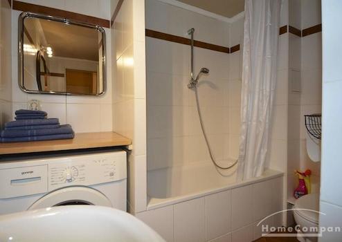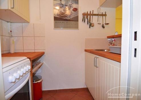 Gemütliche, Zwei-Zimmer-Wohnung ruhig gelegen in einer Seitenstraße der Steglitzer Bergstraße, Nähe Schloßstraße im Zentrum Steglitz. Sie ist komplett möbliert und voll ausgestattet mit Allem, was man zum Wohnen und Wohlfühlen braucht. Sehr guter Lichteinfall dank großer Fenster, 3. OG mit Aufzug. Es gibt ein gemütliches Wohnzimmer mit Schlafsofa und eine offene, sehr kleine, aber vollwertige Küche mit Herd, Kühlschrank. Das moderne Bad hat eine Wanne und eine Waschmaschine. Das Schlafzimmer hat ein 1,40 Meter breites Doppelbett und einen großen Einbauschrank. Es befindet sich ein Deckenventilator im Schlafzimmer.