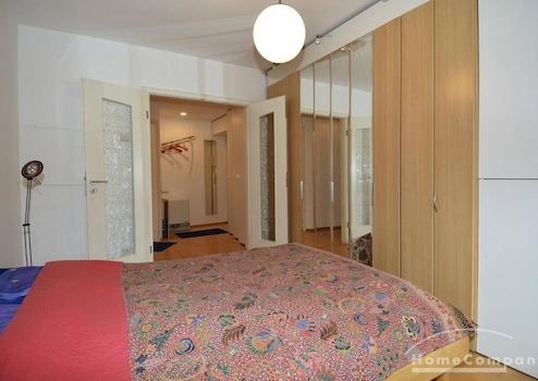 Die Wohnung verfügt über einen großzügigen Wohnraum mit Essbereich und Arbeitsbereich, eine offene geflieste Einbauküche mit Geschirrspüler schließt sich an den Wohnraum an. Von hier ist auch der Balkon zu erreichen. Das Schlafzimmer verfügt über ein Doppelbett und einen großen Schrank. Das geflieste Badezimmer verfügt über eine Badewanne und einer extra Dusche. Die Wohnung hat einen Parkettboden, die Waschmaschine ist in der Küche. Es ist ein DSL- Internetanschluss mit Wlan vorhanden. Sehr repräsentative Lage.