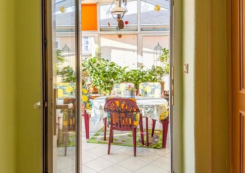 • Den Wintergarten (mit Tisch und Stühlen) und die Terrasse können Sie mit weiteren Mietern gemeinschaftlich nutzen