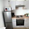 Die Küche besitzt eine Kühlkombination. Sie ist mit