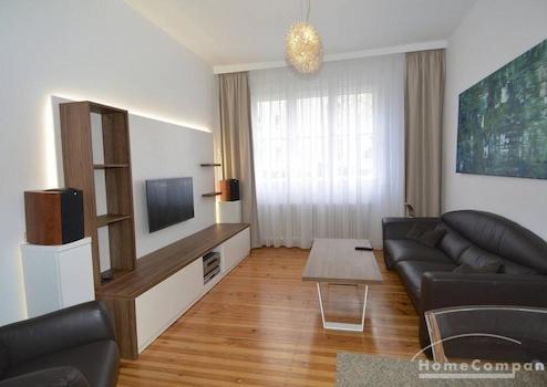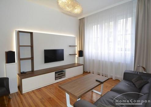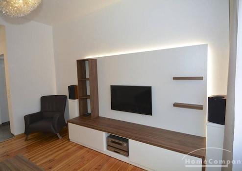 Diese voll möblierte Zwei-Zimmer-Wohnung im Süden Berlins ist top saniert mit sehr gehobener Ausstattung. Abgeschliffene Dielen, begehbare Dusche, elektrische Rollläden, Internet, Hi-Fi, Internet und 42 Zoll TV. Die exklusive Küche wird durch einen Wintergarten bereichert. Kleines gefliestes Badezimmer mit Duschkabine.