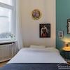 Eine wunderschöne, stilvolle Wohnung voller originaler Kunstwerke, neu renoviert und liebevoll eingerichtet. Sehr ruhig gelegen, dennoch in der Nähe von angesagten Gegenden wie dem Treptower Park, der Spree und Kreuzberg. Schönes Schlafzimmer mit Doppelbett. Internet, Waschmaschine, Spülmaschine ebenso vorhanden.