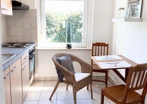 3 Zi.Whg., möbliert, 2. OG. Nur f. NR. Eher für ein Paar, auch mit Kind geeignet. Neues Bad. Komplett ausgestattet. Miete 930,- € zuzügl. Heizung und Strom nach Verbrauch (ca. 150,- €). Höhere Miete bei 2 (+ 65,- €) bzw. 3 (+ 115,- €) Personen. Nur für Nichtraucher.