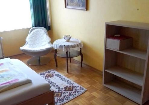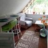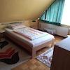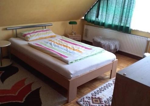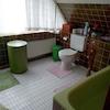Diese helle, schöne Zimmer liegt im Dachgeschoss und hat Parkettfußboden. Zur Ausstattung gehören ein Fernseher, Kabelanschluss, ein Einzelbett und ein Schrank. Küche und Wannenbad mit zwei Waschbecken zur Mitbenutzung (zwei Parteien).