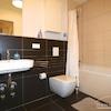 Terrasse auf ganzer Länge vorhanden. Modern gefliestes Bad mit ebenerdiger Dusche. Internet und Waschmaschine vorhanden. Ein PKW-Stellplatz kann angemietet werden.