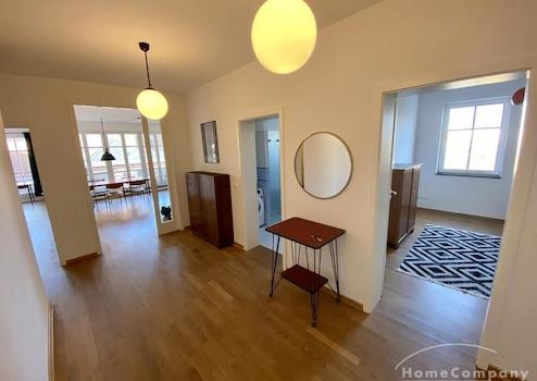 AG149168 Diese beeindruckend große, voll möblierte Wohnung mit drei Schlafzimmern befindet sich in einer charmanten historischen Stadtvilla im begehrten Ludwig Hoffmann Quartier in Pankow. Das denkmalgeschützte, ...