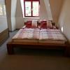 » Queensize-Bett aus massiver Eiche, Schwebetürenschrank
