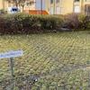Die Fläche ist mit Rasengitter-Steinen gepflastert.