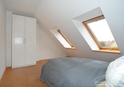 Helle Dachgeschoss-Wohnung auf ca. 85 Quadratmetern mit drei Zimmern. Vor Kurzem vollständig, neu möbliert. Waschmaschine, Badewanne, Küche inklusive aller Geräte, Internet, TV, Terrasse. Es gibt zwei Schlafzimmer mit jeweils einem Doppelbett und ein offenes Wohnzimmer mit einer Ausziehcouch.