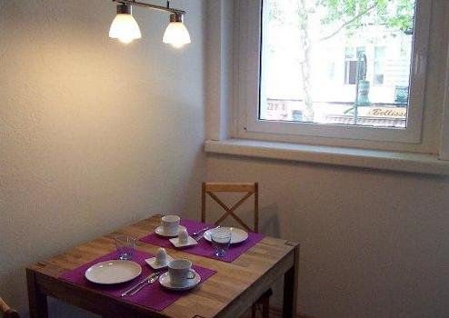 Sehr schön restaurierte Ein-Zimmer-Wohnung in Berlin Schöneberg, nähe KaDeWe. Geschmackvoll möbliert; Fußboden aus Laminat, gefliestes Bad mit Dusche, vollständig eingerichtete Küche, DSL Flatrate. Komplett eigerichtet, Bettwäsche, Geschirr und Handtücher sowie Bügeleisen etc. vorhanden. Westbalkon, offene Einbauküche (Ceran-Kochfeld, Waschmaschine, neues Edelstahl Kochgeschirr) und einen 55-Zoll-LED-Flach-TV.