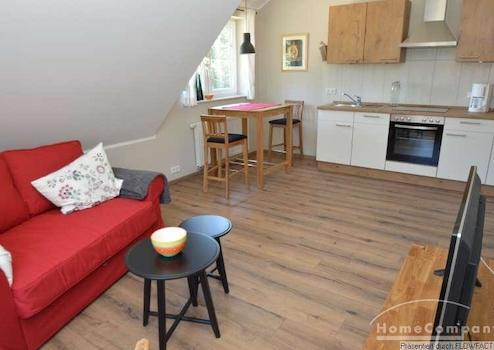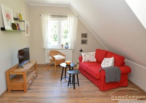 Diese sehr hübsche Wohnung befindet sich auf einer sehr gepflegten Hofanlage. Der offene Wohnbereich beinhaltet die integrierte Küche. Es gibt ein separates Schlafzimmer mit einem Doppelbett. Das Badezimmer entspricht dem insgesamt modernen Standard der Wohnung. Die Wohnung ist perfekt für 1 Person oder ein Paar. Eine Garage kann in Absprache angeboten werden. Im Außenbereich steht ein Grillplatz mit Gartenmöbel zur Verfügung.