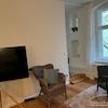 Dieses vollmöblierte, helle Apartment hat einen kleinen Balkon und liegt im ruhigen Seitenflügel eines wunderschönen Gründerzeit-Altbaus. Sie ist saniert und mit Raumthermosthat ausgestattet. Es gibt u.a. ein Doppelbett, einen Schlafsessel, eine voll eingerichteter Einbauküche, ein neues Duschbad, einen HD-Fernseher inklusive DVD-Player. Handtücher, Bettzeug, Kücheneinrichtung und eine neue Kapsel-Kaffee-/Espresso-Maschine sind inklusive. Angenehmes Altbauflair: Deckenhöhe 2,85 Meter, Stuck und wunderschöner Dielenboden.
